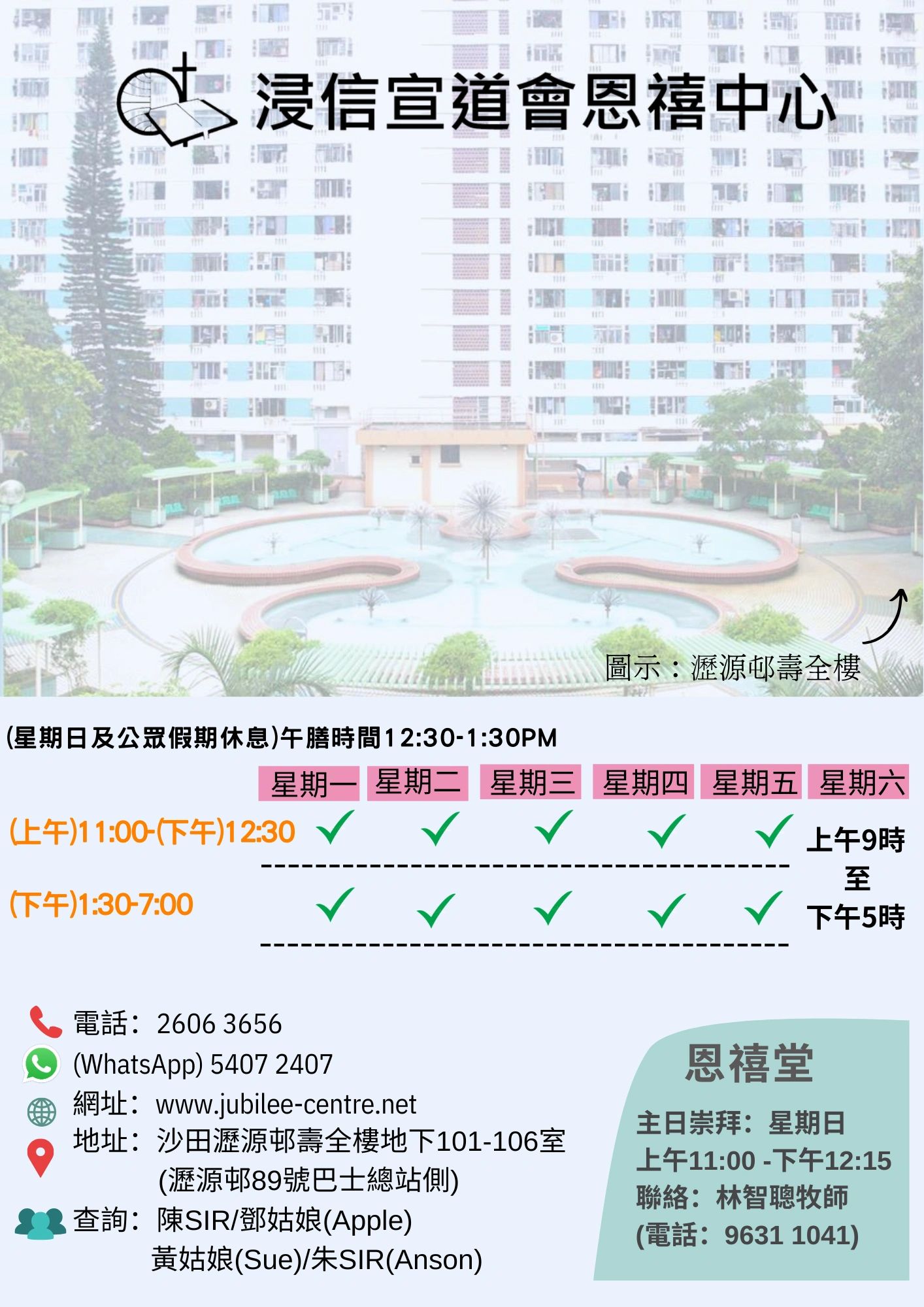職員將於上述時間在恩禧中心或其他場地辦公。